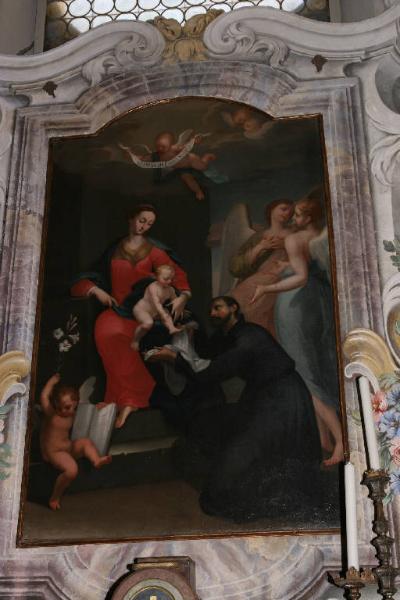 MADONNA IN TRONO CON BAMBINO, UN ANGELO E SAN GAETANO