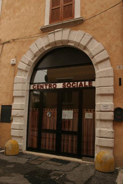 Portale con arco a tutto sesto costituito da coppie di conci a bugnato sporgenti intervallate da specchiature più basse con cornice incisa. Le imposte dell'arco e la chiave di volta sono lisci.