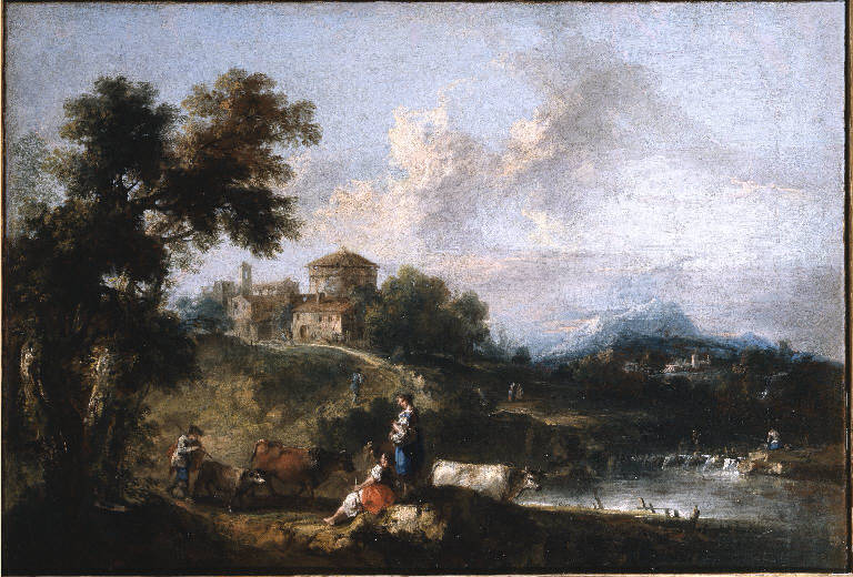 Paesaggio lacustre con pastori e armenti