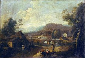 Paesaggio con cascine e figure