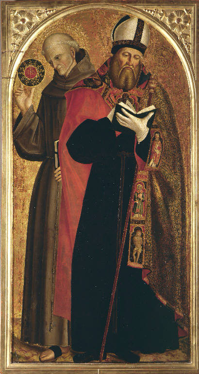 - NOTIZIE STORICO CRITICHE Scomparto di polittico, laterale destro inferiore. La tavola in legno d'abete si compone di due assi. La cornice è dorata e di fattura recente ma in stile antico.