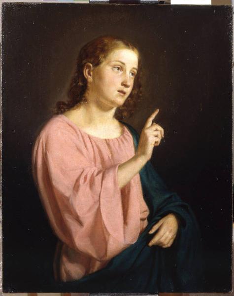 - NOTIZIE STORICO CRITICHE Allievo di Enrico Scuri. Il tema generico del concorso"un fanciullo in atto di osservazione", viene reinterpretato da Giuseppe Epis in un Gesù tra i Dottori, cui si ispira il volto del fanciullo, la positura e i colori delle vesti. el resto l'opera vincitrice di concorso "per la delicatezza, espressione, armonia, fusione e verità di tinte assai lodevole, specialmente il braccio destro che scorcia colla rispettiva mano assai ben dipinto ed inteso" apparteneva aun artista già affermato, cui era stata affidata la commissione sacra Assunzione di Maria" per Grumello (Rea F./ Rossi F.).