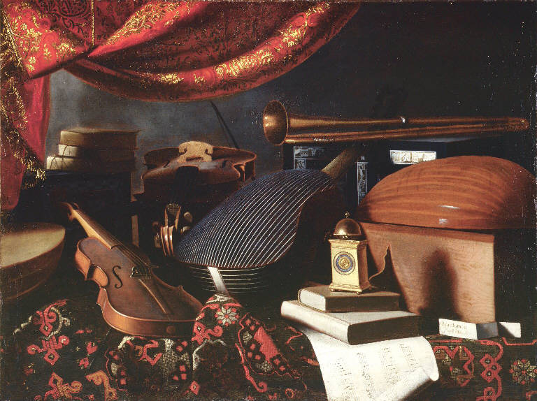- NOTIZIE STORICO CRITICHE L'opera è in pendant con la "Natura morta" anch'essa di Bettera num. inv. 58AC00437. Giovanni Secco Suardo, che acquistò le opere sul mercato antiquario, le lasciò all'Accademia Carrara per legato testamentario nel 1873.\nL'opera è stata esposta ad una mostra intitolata probabilmente "... e furon liutai in Cremona fra rinascimento barocco e romanticismo" a Bergamo nel Museo Civico ala Ponzone nel 2000.
