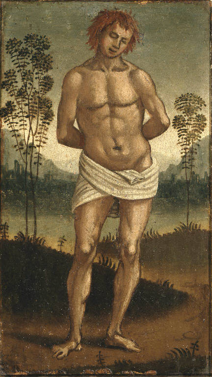 - NOTIZIE STORICO CRITICHE Si tratterebbe dello sportello di un altarolo portatile o di un elemento di predella. Oggetti collegati: San Rocco. San Sebastiano non ha l'attributo delle frecce. Oggetti collegati a livello stilistico: Nascita di San Nicola di Bari (Atlanta, High Museum of Art); Miracolo di San Nicola da Bari (Atlanta, High Museum of Art). Cornice del secolo XVI, originale, a corpo, legno modanato, oro in foglia. Il supporto è in legno d'abete.