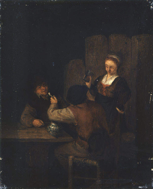 - NOTIZIE STORICO CRITICHE La firma apocrifa risale al XVIII secolo. Il supporto è in rovere olandese. Rossi fa notare come l'opera sia di un artista secondario, il cui stile è in stretto rapporto con quello dello Ostade e di altri artisti specializzati nel genere popolaresco.
