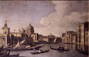 - NOTIZIE STORICO CRITICHE Opera pervenuta in Accademia Carrara col legato Francesco Baglioni del 1900. Oggetti collegati: "Veduta dell'ingresso a Cannaregio con la chiesa di San Geremia a Venezia" (58AC00141).Si ipotizza che nel dipinto in esame Bernardo Canal si sia basato sulle incisioni di Visentini tratte dai dipinti che Canaletto eseguì per il console inglese a Venezia Joseph Smith e oggi conservati nelle collezioni reali di Windsor. La forte analogia stilistica e l'uguaglianza delle misure rispetto a una coppia di dipinti passati in asta presso Sotheby's a New York nel 2004, porta a ipotizzare che Canal abbia eseguito una serie di vedute del Canal Grande per un anonimo collezionista, tutte tratte dalle incisioni del Visentini, e che due di esse siano stato acquistate dal Baglioni nella seconda metà del XIX secolo. La datazione proposta da Dotti ("Paesaggi, vedute e capricci lombardi e veneti del Seicento e del Settecento", 2007) fa riferimento al modello dal quale il Canal trasse questa e altre vedute coeve, ovvero l'album di incisioni del Visentini.