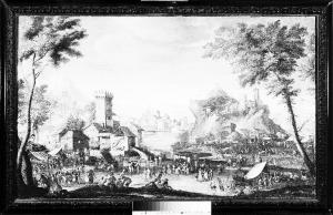 Fiera. Paesaggio con mercato vicino a una città