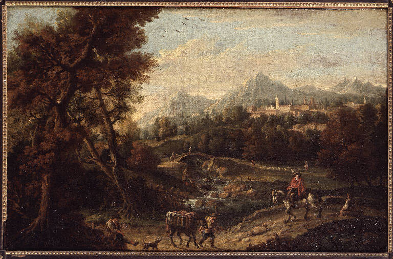 - NOTIZIE STORICO CRITICHE Fa parte di una serie di quattro paesaggi campestri con fiume (nn. inv. 58AC00783, 58AC00784, 58AC00785, 58AC00786). Oggetti collegati: "Paesaggio con cascatella", "Paesaggio con torrente", "Paesaggio con mandria".