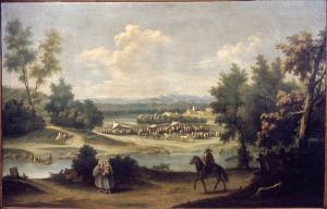 Paesaggio fluviale con fiera contadina