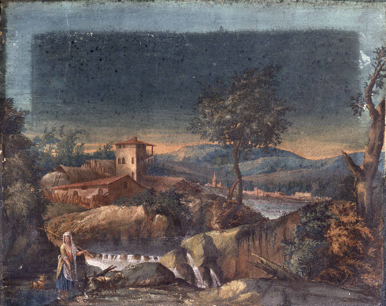 Paesaggio con pastorella vicino a un cascinale