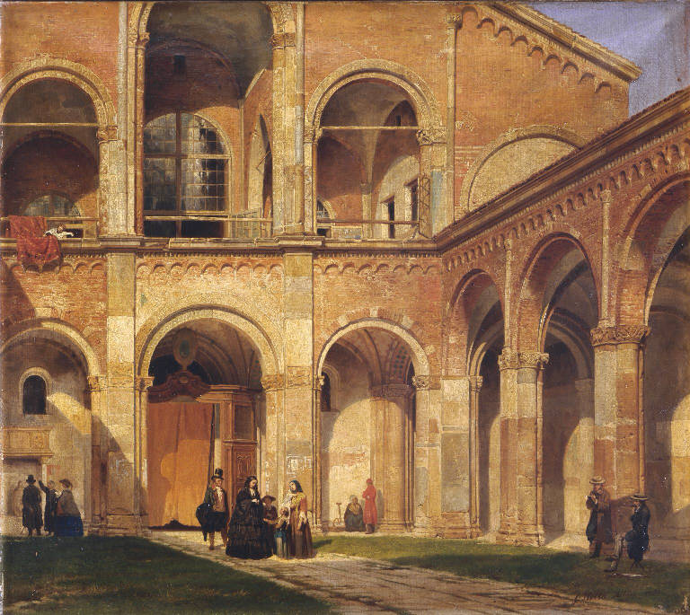 Veduta prospettica del quadriportico della chiesa di Sant'Ambrogio a Milano
