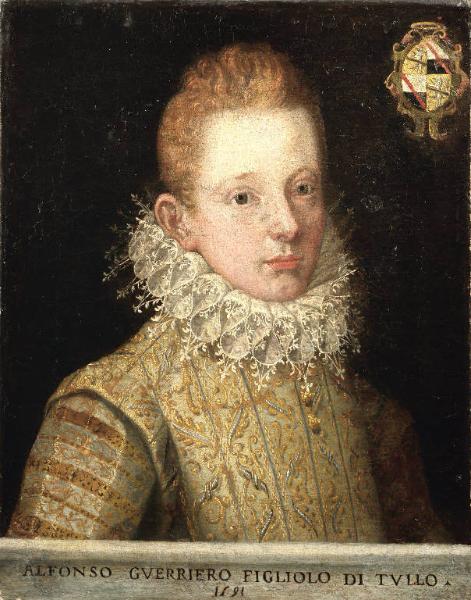 - NOTIZIE STORICO CRITICHE Fa parte di una serie di ritratti della famiglia Guerrieri (nn. inv. 58AC00430, 58AC00431, 58AC00432, 58AC00433, 58AC00434). Oggetti collegati: "Ritratto di Francesca Guerrieri Gonzaga", "Ritratto di Giulia Brembati Guerrieri", "Ritratto di Vincenzo Guerrieri" e "Ritratto di Giovan Battista Guerrieri". Giovanni Marenzi ereditò l'opera prima del 1921.