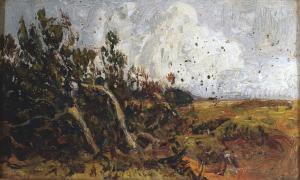 - NOTIZIE STORICO CRITICHE Appartiene a una serie di sei paesaggi scozzesi (nn. inv. 58AC00592a, 58AC00592b, 58AC00592c, 58AC00595a, 58AC00595b, 58AC00595c). Oggetti collegati: "Paesaggio in Scozia", "Paesaggio in Scozia, scogliera", "Paesaggio in Scozia con canneto", "Paesaggio in Scozia", "Paesaggio in Scozia". Giovanni Marenzi ereditò l'opera prima del 1921.\nLa cornice include anche altri due paesaggi: nn. inv. 58AC00592b e 58AC00592c.