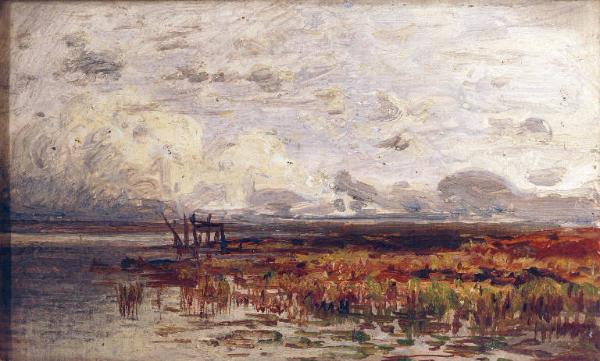 - NOTIZIE STORICO CRITICHE Appartiene a una serie di sei paesaggi scozzesi (nn. inv. 58AC00592a, 58AC00592b, 58AC00592c, 58AC00595a, 58AC00595b, 58AC00595c). Oggetti collegati: vedi scheda precedente. Giovanni Marenzi ereditò l'opera prima del 1921.\nLa cornice include anche altri due paesaggi: nn. inv. 58AC00592a e 58AC00592c.