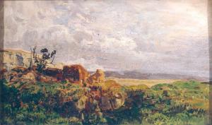 - NOTIZIE STORICO CRITICHE Appartiene a una serie di sei paesaggi scozzesi (nn. inv. 58AC00592a, 58AC00592b, 58AC00592c, 58AC00595a, 58AC00595b, 58AC00595c). Oggetti collegati: vedi scheda precedente. Giovanni Marenzi ereditò l'opera prima del 1921.\nLa cornice include anche altri due paesaggi: nn. inv. 58AC00592a e 58AC00592b.