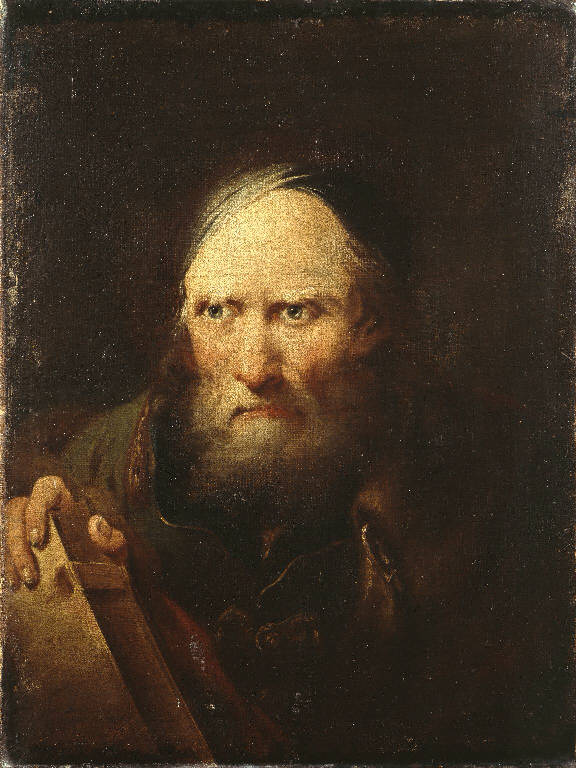 - NOTIZIE STORICO CRITICHE Appartiene a un pendant con figure di vecchi. Oggetti collegati: "Ritratto di vecchia" (num. inv. 58AC00185). L'opera in oggetto potrebbe forse essere identificata con il n. 24 dell'inventario Pisoni, identificabile anche con l'opera num. inv. 58AC00563. Al 1984 risale l'attribuzione dell'opera a Giuseppe Nogari, comunicazione orale di Mauro Lucco.