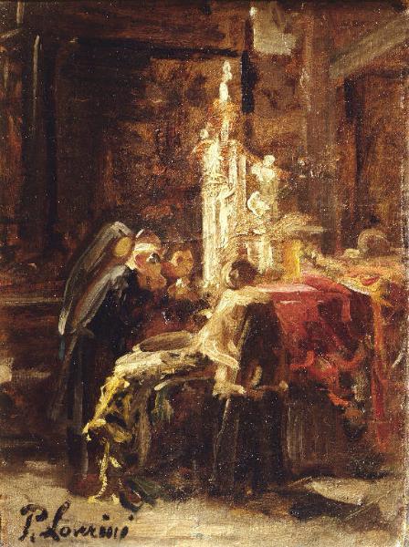 - NOTIZIE STORICO CRITICHE Si tratta di un bozzetto.\nL'opera è stata esposta ad una mostra intitolata probabilmente "Ponziano Loverini" a Bergamo nel Centro Culturale "Il Conventino" nel 1986.
