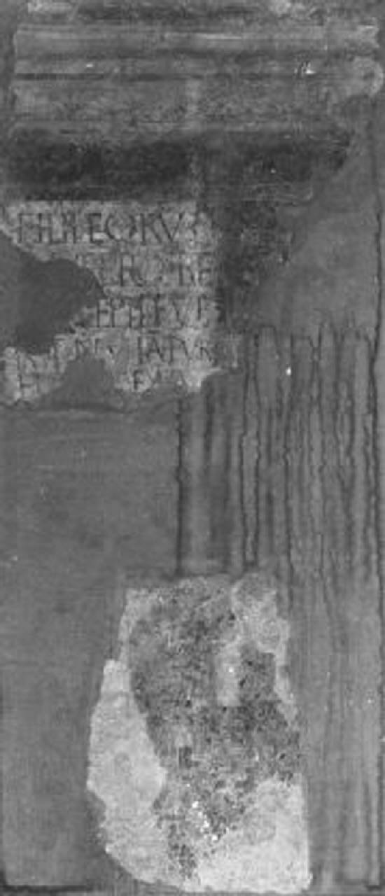 - NOTIZIE STORICO CRITICHE Insieme agli affreschi "Filosofo Epimenide", "Filosofo greco e architettura", "Filosofo Chilone", "Filosofo (?)", "Stemma gentilizio della famiglia Badoer", "Colonnato", "Colonnato", "Architettura con capitello", "Cornicione con fregio", "Architravi e oculo", "Architettura" e "Architettura", il dipinto è un frammento del complesso decorativo della facciata del Palazzo del Podestà di Bergamo. Si trova in deposito presso il Palazzo della Ragione, Sala delle Capriate.