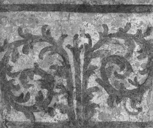 - NOTIZIE STORICO CRITICHE Il dipinto è stato strappato da muro e riportato su tela in epoca imprecisata. Insieme ad altri cinque affreschi raffiguranti una "Figura maschile con lepre", "Piramo e Tisbe", una "Caccia alla lepre", un "Paesaggio con cane" e un altro "Fregio vegetale", proviene da una casa privata di Almenno San Bartolomeo. Si trova in deposito nella Sala dei Giuristi nel Palazzo del Podestà di Bergamo.