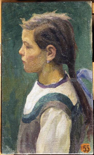 - NOTIZIE STORICO CRITICHE Allievo di Ponziano Loverini. Nel 1920 il premio Piazzoni viene diviso equamente a metà tra il Facchinetti con quest'opera e Severino Belotti con Uomo che dorme (cfr. 06EL00043). L'opera del Facchinetti è assai diversa dalla prova accademica del Belotti. In questo caso si tratta i un ritratto "di fattura neo-talloniana" (Rossi F.) conforme alla produzione successiva dell'artista.