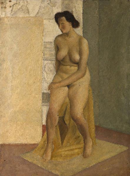 - NOTIZIE STORICO CRITICHE Allievo di Contardo Barbieri. Insignito due volte del premio Cuvio, non si sa in quali anni. Non sono state reperite altre informazioni bibliografiche, sicuramente la sua attività di pittore è proseguita dopo l'alunnato in Carrara, perchè il premio Cuvio è stato istituito nel 1958. L'opera è il risultato di un'esercitazione scolastica, nella quale l'artista rielabora spunti stilistici che provengono dai grandi movimenti italiani, oltre che dagli insegnamenti del maestro, senza realizzare però un'opera convincente. Il volto della modella è appena abbozzato, mancando la voltà di definirla fisionomicamente, presta invece notevole attenzione alla linea che ne descrive il corpo, ma la posizione risulta faticata; il fondale è appena accennato per offrire l'dea dell'interno di un'aula di pittura e dominante sulla figura, troppo piccola, che si perde sul fondale.