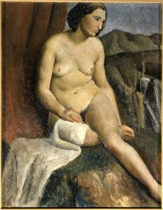 - NOTIZIE STORICO CRITICHE Allievo di Contardo Barbieri. L'opera è realizzata al verso del dipinto Giovani donne. Si tratta di un'esecuzione accademica molto interessante, sia per la monumentalità del corpo femminile ritratto in sintonia con la linea di Novecento, sia per la scelta neo rinascimentale di eseguire il nudo sullo scorcio di un paesaggio, inquadrandolo con un tendaggio rosso.