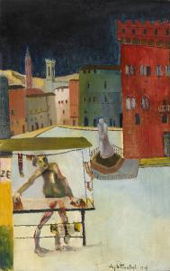 - NOTIZIE STORICO CRITICHE Allievo di Trento Longaretti. Si diploma presso l'Accademia Carrara nel 1963, con un iter scolastico costellato di premi e successi. L'opera in analisi è la vincitrice del premio Oprandi nel 1963. Il dipinto propone una singolare veduta di Firenze con case dai colori accesi e violentemente contrastanti, prospettive esasperate, un cielo livido che si riflette su un selciato azzurro nitidissimo, sul quale si muove una figura antropomorfa, vagamente fantastica. Una visione onirica della realtà come la vede il pittore, un'opera che ancora si può inserire in un filone surrealista che ormai si sta spegnedo, ma che risulta particolarmente efficace.