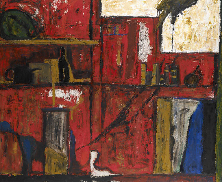 - NOTIZIE STORICO CRITICHE L'autore nato a Lovere, ha frequentato l'Accademia Carrara di Belle Arti diplomandosi con il massimo dei voti nel 1993. L'opera qui esaminata è solo in apparenza una tela astratta, perchè in realtà si colgono dei dettagli di natura morta, come i libri appoggiati sulla mensola, in alto a destra, insieme ad altri oggetti di non facile identificazione, forse una bottiglia e una brocca.