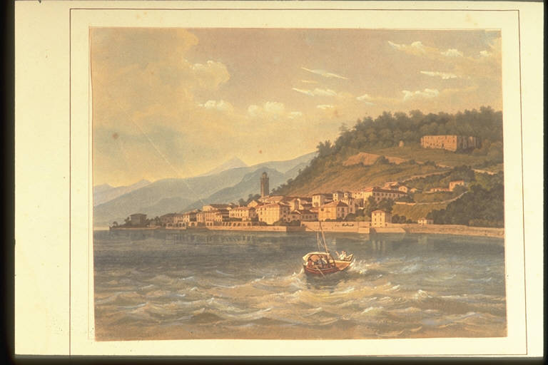 Veduta della villa Serbelloni a Bellagio sul Lago di Como. Lago, paese, barca