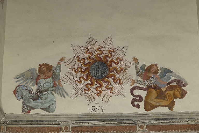 ANGELI CON SOLE RAGGIATO E MONOGRAMMA
