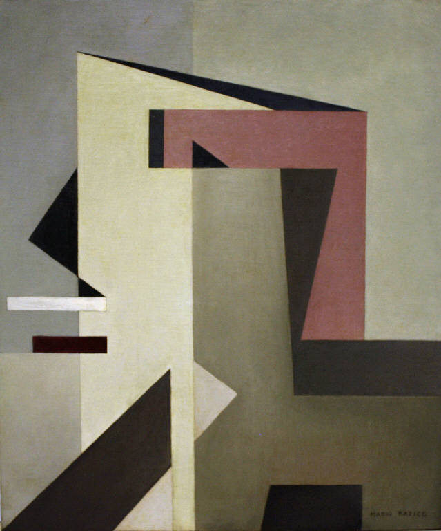 - NOTIZIE STORICO CRITICHE La "Composizione G.R.U 35B" esemplifica le ricerche pittoriche intraprese da Radice nel corso degli anni Trenta e che lo porteranno, tra i primi in Italia, alla messa a punto di un linguaggio astratto di rigorosa essenzialità geometrica, in dialogo con le esperienze di punta dell'avanguardia non figurativa europea degli anni tra le due guerre mondiali. Le ricerche di Radice si inseriscono nella più ampia sperimentazione sull'arte astratta che tocca la città di Como lungo gli anni Trenta grazie all'attività di pittori come Manlio Rho, Aldo Galli e Carla Badiali, che saranno accomunati dalla definizione di "Astrattisti comaschi". Alla base di queste esperienze si pone il dialogo fecondo intrattenuto da questi artisti con il loro concittadino Giuseppe Terragni, uno dei fondatori dell'architettura razionalista europea, con il quale lo stesso Radice aveva collaborato per la decorazione astratta di alcuni ambienti della Casa del Fascio di Como. \nlIl dipinto fu riprodotto per la prima volta nel febbraio 1938 sull'unico numero della rivista "Valori Primordiali", fondata a Como da Mario Radice e Manlio Rho insieme al filosofo Franco Ciliberti.