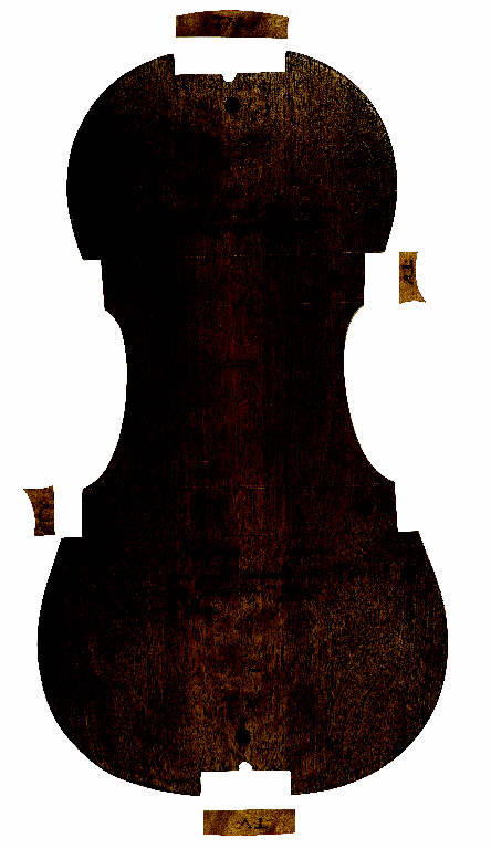 - NOTIZIE STORICO CRITICHE La forma fu utilizzata da Antonio Stradivari per la costruzione della viola "Medicea", commissionata dal principe Ferdinando, figlio del granduca di Toscana Cosimo III de' Medici e tuttora conservata a Firenze. Insieme al disegno per il piazzamento delle ff e ai modelli per le altre parti dello strumento, conservati al Museo del Violino, costituisce il corredo con il quale il maestro realizzò l'opera. La sua storia ripercorre le stesse vicende dei reperti stradivariani della donazione Fiorini, cui appartiene. Qualche tempo dopo la morte di Stradivari, passa, per opera di suo figlio Paolo, insieme ad altri materiali della bottega, nella collezione di Ignazio Alessandro Cozio, conte di Salabue, il maggior collezionista di strumenti ad arco e materiale liutario dei suoi tempi, che codificò i principi della moderna disciplina liutaria. Alla sua morte, la collezione viene dispersa dai suoi eredi. Una parte viene venduta dalla figlia Matilde, mentre un'altra parte viene ereditata dal marchese Giuseppe Rolando della Valle. Da lui passa al figlio, che a sua volta la lascia in eredità alla moglie Paola della Valle del Pomaro. E' quest'ultima, nel 1920, a cedere la collezione al liutaio bolognese Giuseppe Fiorini, che intende restituirla alla fruizione collettiva. Nel corso dei successivi dieci anni, però, Fiorini non riesce a trovare una collocazione adeguata alla preziosa raccolta: ovunque si rivolga la sua donazione viene rifiutata, forse anche a causa delle condizioni poste, tra le quali l'apertura di una scuola di liuteria, non approvata nemmeno dal Ministero della Pubblica Istruzione. Nel 1930, Fiorini decide di donare i materiali al Museo Civico di Cremona, dove vengono esposti nella Sala Stradivariana, accanto ai reperti stradivariani della donazione Cerani. Nel 1956, l'intera collezione museale viene trasferita alla Scuola Internazionale di Liuteria, fondata nel 1938, tre anni dopo la morte di Fiorini. La scuola era allora ospitata a Palazzo dell'Arte, lo stesso edificio che dal 2013 ospita il Museo del Violino. Da qui essa è nuovamente trasportata nel 1976 nei locali di Palazzo Affaitati, sede del Museo Civico, dove le vengono assegnate diverse collocazioni temporanee. Infine, nel 2013, l'ultimo trasferimento a Palazzo dell'Arte, in occasione dell'apertura del nuovo Museo del Violino.