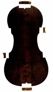 Forma per viola tenore recante al centro le lettere .T. .V. (tenore viola). Nella parte superiore, iscrizione autografa di Antonio Stradivari, ricalcata da una seconda mano, sulla quale sono state tracciate delle linee nel tentativo di cancellarla. Nella parte inferiore, iscrizione da assegnare a una mano più tarda di oltre due secoli.\nLa forma è corredata da quattro modelli per il taglio dei blocchi, che servono per impostare la costruzione delle fasce laterali.