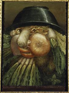 - NOTIZIE STORICO CRITICHE Pervenuta nelle collezioni del Museo grazie al lascito di Sigismondo Ala Ponzone, la tavoletta è rimasta a lungo nell'anonimato, finchè Alfredo Puerari nel 1951 non l'ha resa nota come opera di Arcimboldi. Da allora ha riscosso un forte interesse da parte degli studiosi che così trovavano conferma della produzione di teste reversibili ricordata nella storiografia e negli inventari della corte rudolfina.\nIl dipinto appartiene al genere capriccioso, o rabisch, infatti da semplice natura morta di ortaggi contenuti in una coppa, ruotandola di 180 gradi diviene un divertente ritratto.\nLe riflettografie eseguite da Mario Lazzari evidenziano la presenza di una precedente ideazione con la coppa e gli ortaggi disposti in modo diverso, inoltre permettono di escludere che i segni presenti sulla coppa costituiscano una possibile firma "Arcimboldus", diversamente da quanto in passato era stato ipotizzato.