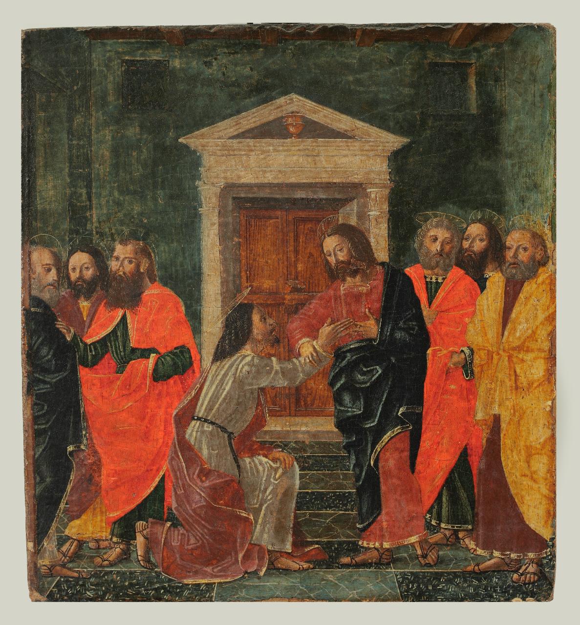 - NOTIZIE STORICO CRITICHE La tavoletta con l'Incredulità di San Tommaso faceva parte con tutta probabilità di una serie dedicata alle scene della Passione di Cristo, insieme ad esempio al Compianto sul Cristo morto o la Resurrezione di Cristo della collezione Crespi. La paternità a Butinone non è documentata ma è ormai accettata per ragioni stilistiche, come la rigidità e il grafismo duro dei panneggi e delle figure. La datazione oscilla tra il 1475 e il 1480, periodo in cui il pittore risente fortemente della lezione padovano-mantegnesca e appena prima di una maturità lombarda costituita dal Polittico di Treviglio.