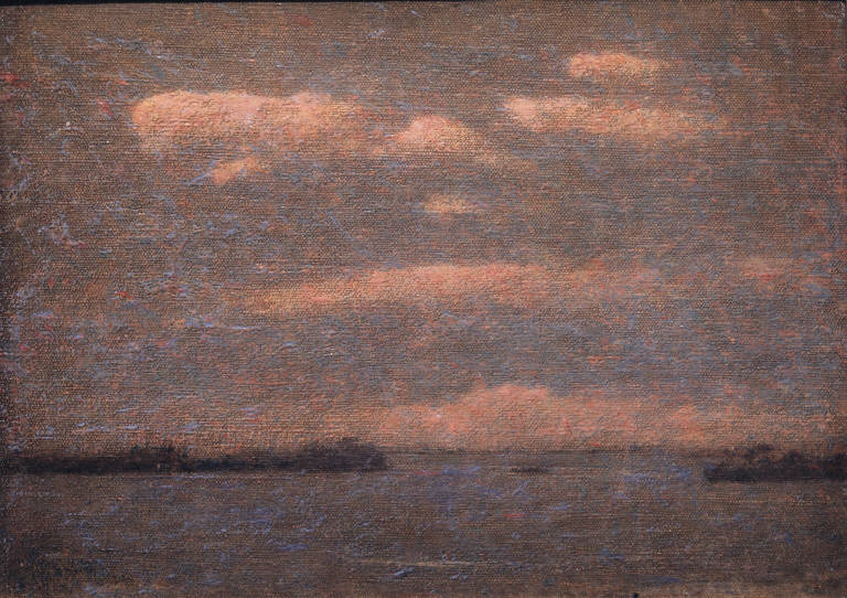 - NOTIZIE STORICO CRITICHE Grubicy fu a Venezia nell'estate del 1897, dove si era recato all'inaugurazione della II Biennale. Colse quindi l'occasione per schizzare dal Lido numerose vedute della città, il cui profilo emerge appena dalla densa atmosfera della laguna. La trama si addensa in grumi di colore, paragonabili agli effetti ottenuti nei dipinti dedicati a Santa Margherita Ligure o alle Vedute del Lago Maggiore. Grubicy aggiunge inoltre stratificazioni di colore puro, in una personale declinazione del divisionismo.
