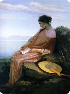Donna seduta su uno scoglio. Donna seduta