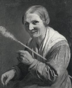 Vecchia che fila con la rocca. Ritratto di donna