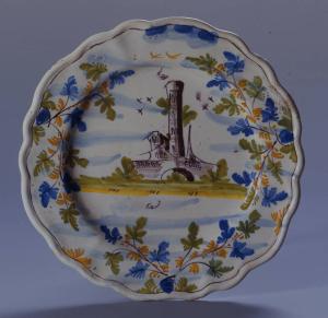 • NOTIZIE STORICO CRITICHE Lo stilema decorativo a 'castelletto' è largamente diffuso a Pavia e a Lodi nella seconda metà del XVIII secolo. Numerose le collezione private che conservano da sempre questi piatti. Esemplari di questo tipo sono conservati presso il Collegio Borromeo di Pavia
