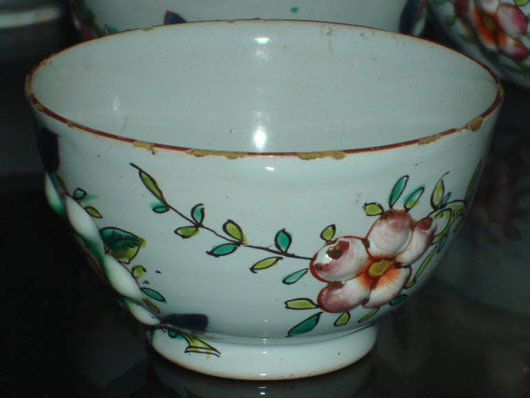Tazza da caffè a calotta emisferica in maiolica policroma