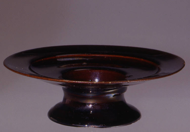 - NOTIZIE STORICO CRITICHE La forma del piattino a 'trembleuse', cioè con incavo per contenere la tazzina, è tipica del XVIII secolo, quando si diffonde l'uso del caffè. L'evoluzione successiva della tazzina da caffè prenderà forme e modellati decisamente diversi. Tradizionalmente le maioliche ad effetti di tartaruga con applicazioni di lamine d'oro sono state in passato attribuite a fabbriche pavesi del XVIII secolo. Attualmente si considera questa tipologia di produzione ligure.