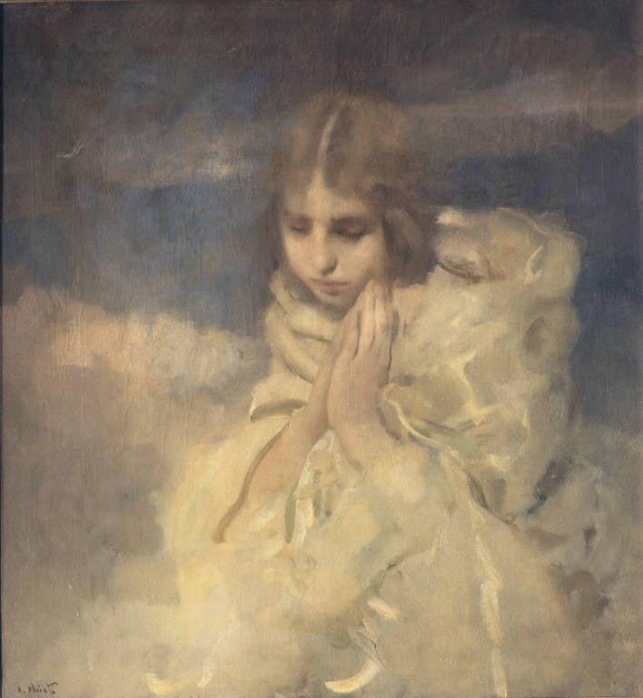 - NOTIZIE STORICO CRITICHE Il dipinto fu acquistato, secondo la testimonianza dello stesso Giulio Morone, presso il corniciaio antiquario milanese Bosoni. La preghiera appartiene a un ristretto numero di dipinti di tema religioso realizzati dal pittore; tale tematica non trovò, infatti, favorevole accoglienza nel collezionismo del tempo, più incline a temi mondani.