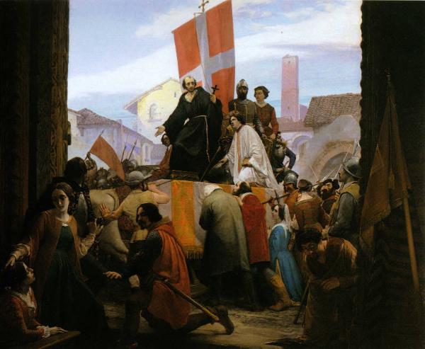 Frate Jacopo Bossolaro che dal carroccio arringa il popolo eccitandolo contro i Beccaria. Frate Jacopo Bossolaro parla al popolo