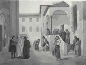 - NOTIZIE STORICO CRITICHE Il quadro, proveniente dalla Scuola di Pittura (inv. 94), vinse il premio al concorso Frank del 1873, nonostante le polemiche dei concorrenti De Amenti e Tognola. Il dipinto fu preceduto da diversi schizzi di figura e da un disegno preparatorio di grandi dimensioni; la tela raffigura un tema di storia locale: la distribuzione dei medicinali ai bisognosi nella piazzetta di S. Teodoro, secondo l'uso stabilito dal benefattore Francesco Cossa.