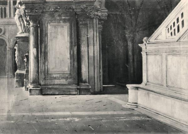 - NOTIZIE STORICO CRITICHE la tela, proveniente dalla Civica Scuola di Pittura (inv. 12), potrebbe essere identificato con il dipinto Studio architettonico presentato nel 1913 all'Esposizione Nazionale di Pavia (Esposizione Nazionale Artistica 1-31maggio 1913 promossa dall'Associazione Amici del'Arte, Pavia 1913).