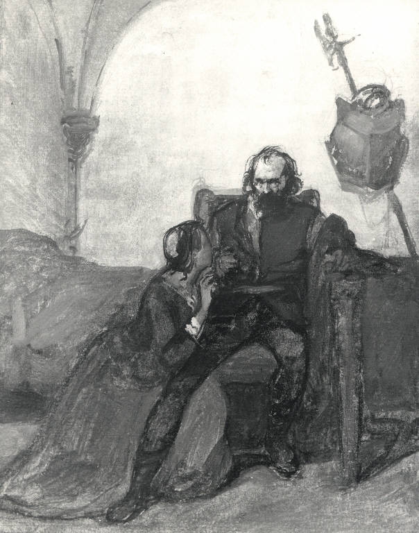 - NOTIZIE STORICO CRITICHE Il dipinto è pervenuto alle raccolte pavesi per legato di Giovanni Carlo Francesco Reale (1892), passato nel 1912 alla Scuola di Pittura (inv. 81) e di qui giunto ai Musei Civici. L'opera fu commissionata dal Marozzi nel 1847, ma, nonostante i solleciti, non risulta terminata per l'esposizione di Brera. I Musei Civici, oltre il bozzetto, possiedono una serie di studi preparatori.