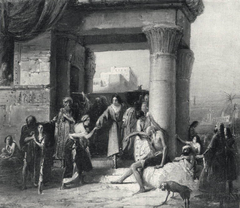 - NOTIZIE STORICO CRITICHE La tela è pervenuta alle raccolte pavesi per legato di Giovanni Carlo Francesco Reale (1892), passata nel 1912 alla Scuola di Pittura (inv. 137) e di qui giunta ai Musei Civici. I bozzetti preparatori al S. Antonio offre ai poveri i suoi averi rivelano una lunga meditazione per la realizzazione della versione definitiva, pertanto rimasta incompiuta.