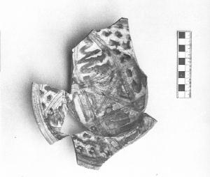 - NOTIZIE STORICO CRITICHE Proviene dagli scavi stratigrafici all'interno della Torre Civica di Pavia (1972-3) (cfr. H. Blake, Scavo nella Torre Civica di Pavia, 1972 in Archeologia Medievale, I, 1974). Il motivo decorativo è simile ad altri ritrovamenti milanesi.