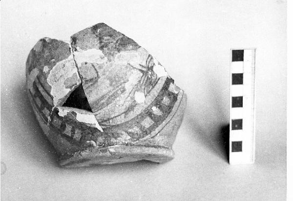 - NOTIZIE STORICO CRITICHE Proviene dagli scavi stratigrafici all'interno della Torre Civica di Pavia (1972-3) (cfr. H. Blake, Scavo nella Torre Civica di Pavia, 1972 in Archeologia Medievale, I, 1974). Il rivestimento si avvicina alle caratteristiche dello smalto, talvolta definita "mezza maiolica". La tipologia è comune in area pavese e milanese.