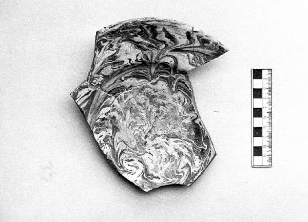 - NOTIZIE STORICO CRITICHE Proviene dagli scavi stratigrafici all'interno della Torre Civica di Pavia (1972-3) (cfr. H. Blake, Scavo nella Torre Civica di Pavia, 1972 in Archeologia Medievale, I, 1974). Il motivo decorativo è tipico in area padana, particolarmente diffuso in area pavese.